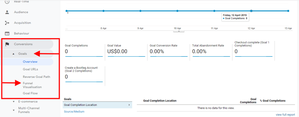 To track your shopping cart abandonment with Google Analytics, first, you’d need to create a Google Analytics Goal, where a visitor needs to complete an order/purchase. If you’ve just created your goal for the first time, you’ll need to give GA some time to populate the report first.